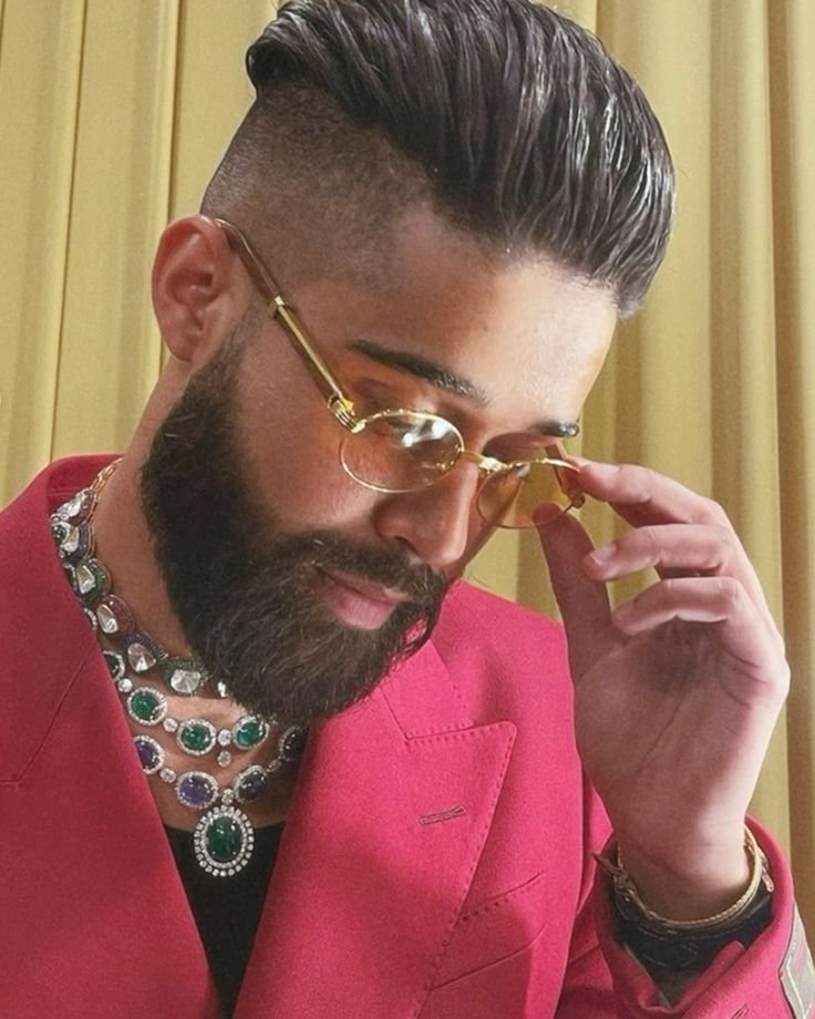 You cannot talk about AP Dhillon Hairstyle without talking about the beard. His go-to style is the ducktail beard — a V-shaped point at the chin that adds structure and sophistication. Sometimes he goes for a lighter faded beard instead, keeping it softer. Either way, the beard is always trimmed, always clean, and always intentional.