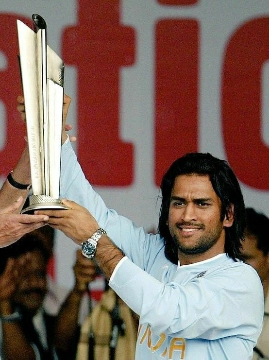 This was the Goldilocks phase—not too long, not too short, just right. The hair now fell just above his shoulders, and those infamous highlights became more subtle. This was also the era when Dhoni led India to their first-ever T20 World Cup victory in 2007. Coincidence? Maybe. But there’s something to be said about looking good while making history.