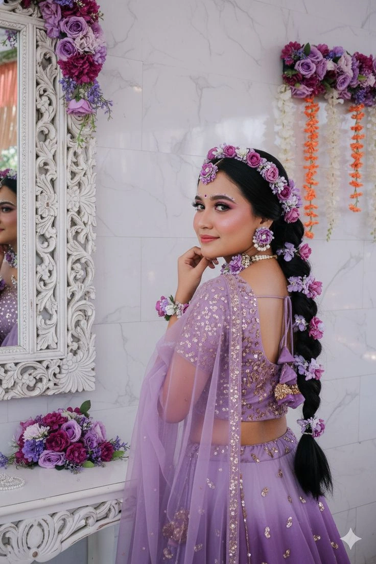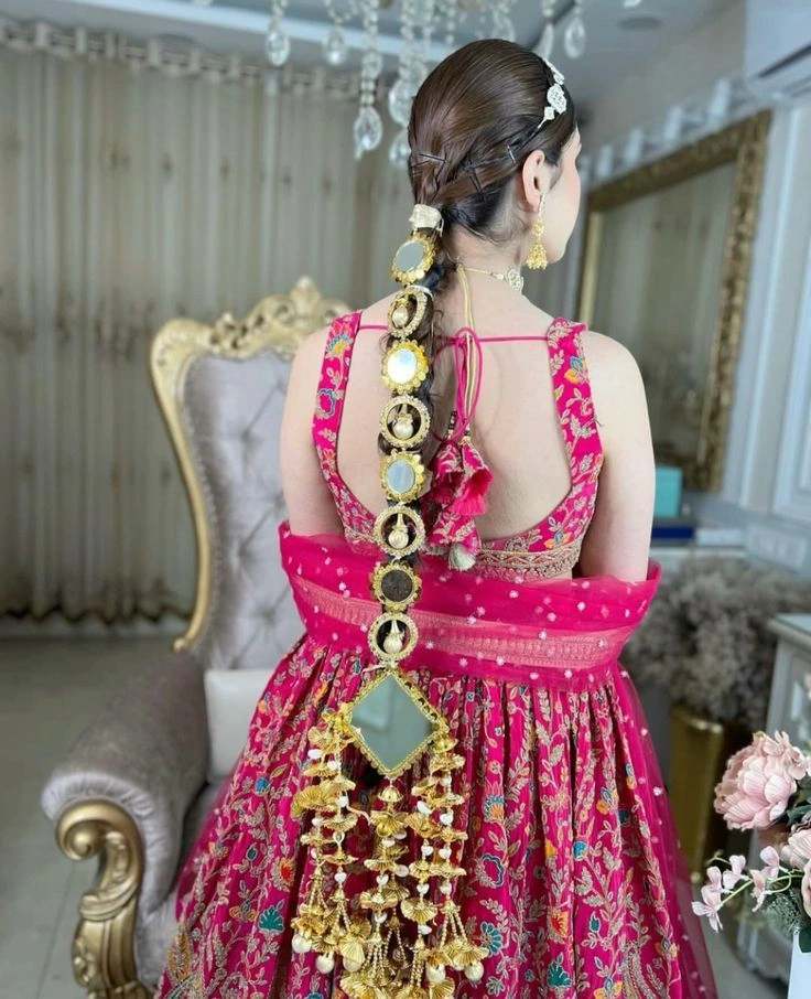 Here’s a styling tip that changed my life: your paranda hairstyle on lehenga should complement your outfit, not compete with it. Got a heavily embellished lehenga? Go for a simpler paranda design. Wearing something minimal? That’s your chance to go bold with your hair!